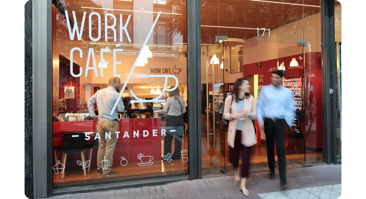 Nacido en Chile en 2016, Work Café se ha convertido en una red mundial con 220 establecimientos en América y Europa. De Madrid a Nueva York, de Londres a São Paulo, estamos redefiniendo la forma de hacer banca para servir cada día mejor a nuestros clientes. Pero, incluso aunque todavía no seas cliente Santander eres bienvenido a formar parte de nuestra comunidad Work Café.