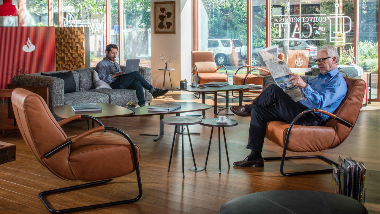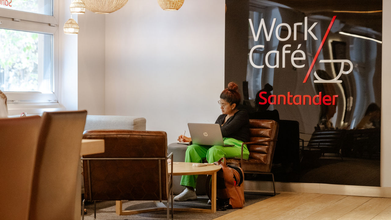 Tanto si necesitas ponerte al día con el trabajo en medio de un viaje, como si simplemente buscas un espacio para pensar o para tener una reunión, formas parte de la comunidad Santander Work Café. Nuestra red está pensada para clientes y no clientes. No importa de dónde vengas o a dónde vayas a ir a continuación: aquí siempre te damos la bienvenida, un sitio tranquilo, conexión WiFi de alta velocidad y algo de beber.